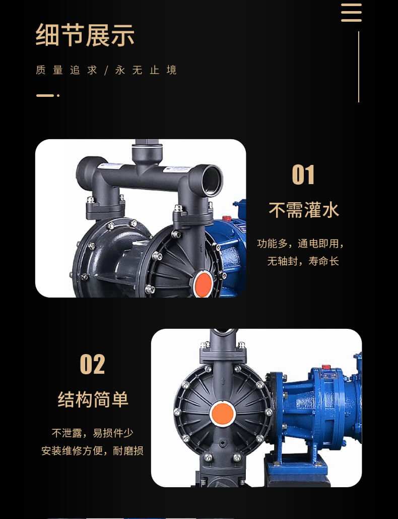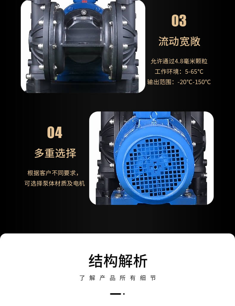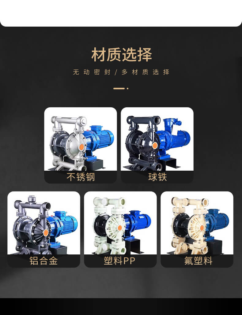 DBY 型電動(dòng)隔膜泵是一種新型的泵類,近年來,在隔膜材質(zhì)上取得了突破性的進(jìn)展。本泵應(yīng)用于石化、陶瓷、冶金等行業(yè),這種泵的主要特點(diǎn)是不需灌引水。直徑在10毫米以下的顆粒、泥漿等均可以毫不費(fèi)力地通過。由于隔膜將被輸送介質(zhì)和傳動(dòng)機(jī)械件分開,所以介質(zhì)絕對(duì)不會(huì)向外泄漏,且泵本身無軸封,使用壽命大大延 長。根據(jù)不同介質(zhì),隔膜分為氯醇橡膠、氟橡膠、丁晴橡膠等,完全可以滿足不同用戶的要求。