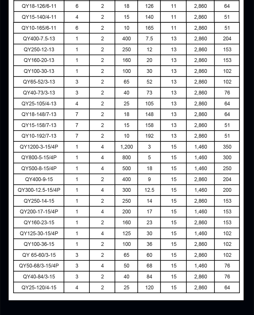 QY系列全揚程油浸式潛水電泵由潛水電機、水泵、密封三部分組成。水泵位于產品上部,電機位于產品下端,該系列產品由于流量及揚程適用范圍極廣,是廣大農村、工礦企業廣泛使用的電力排灌設備,適用于農業排灌、礦山排水、園林噴灌、井下提水、水塔進水、城建用水等場合排水。