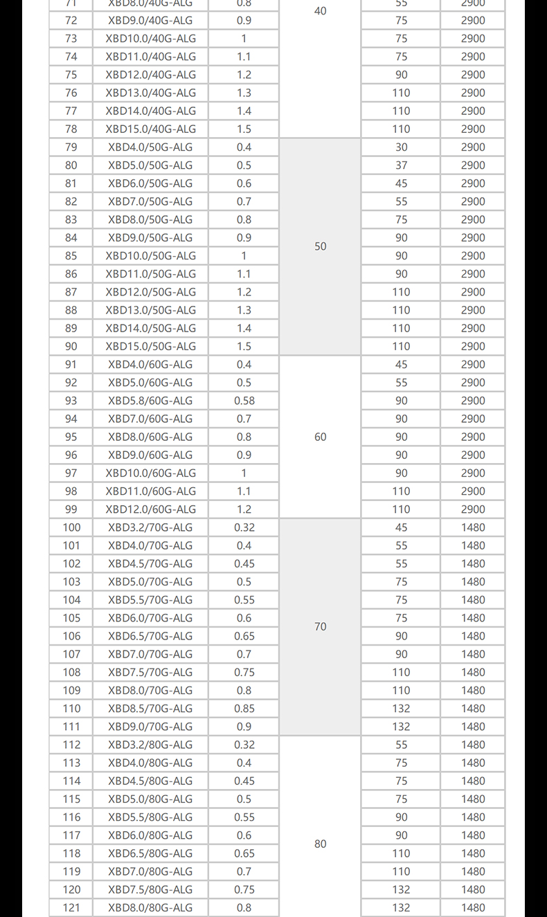 XBD-ALG立式單級消防泵是一種消防用具,供輸送不含固體顆粒的清水及物理化學性質類似于水的液體之用,主要用于消防系統管道增壓送水和各種場合的消防給水(消防栓滅火系統、自動噴淋滅火系統和水噴霧滅火系統等),也可適用于工業和城市給排水,高層建筑增壓送水、遠距離送水、采暖、浴室、鍋爐冷暖水循環、增壓空調制冷系統送水及設備配套等場合。